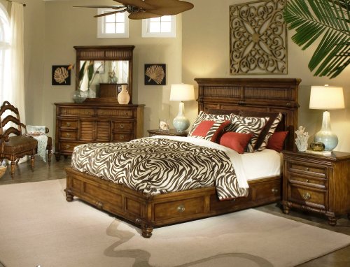 The Tides Platform Storage Bed by Aico Furniture is constructed of Birch and Poplar solids, with Birch and Cherry veneers and creates a striking appeal with the louver look on doors and bead board accents. Throughout the Tides Collection, crushed or split bamboo, and louvered slats are prominent, and bamboo slats are woven together with leather strapping. The combined effect will help any beach fantasy come alive with the island feel and shutter look of the collection..../ Tides Platform Storage Bed - AICO Furniture / platform beds