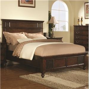 Beautifully detailed carvings and mouldings and turned bun feet show off the traditional styling of this beautiful bed. The dark cherry finish is a perfect fit for this stylish piece and will make the centerpiece of your bedroom an eye catcher. Dimensions: